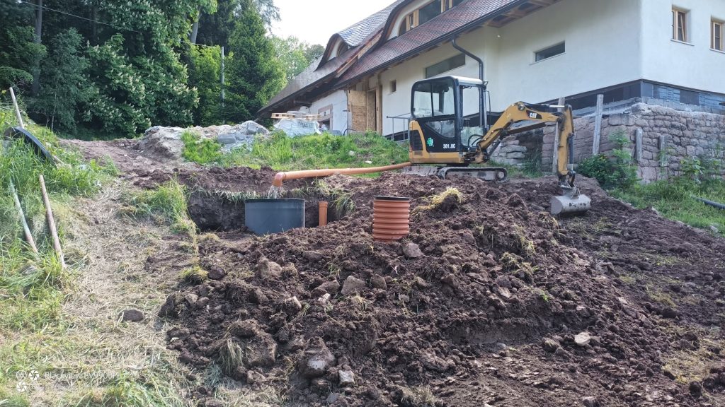 Kanalizace a čistička odpadních vod u novostavby v Bílém Újezdu