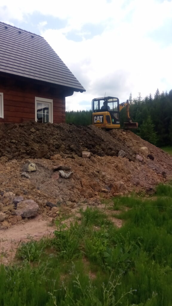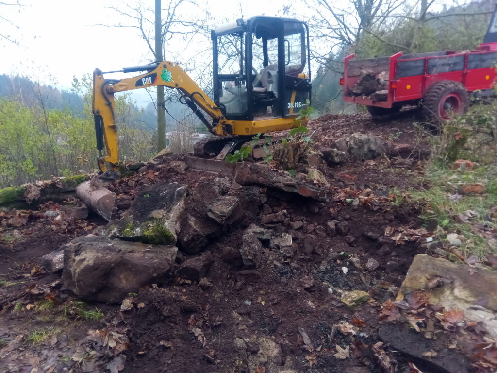 Trhání pařezů a terénní úpravy před rekonstrukcí