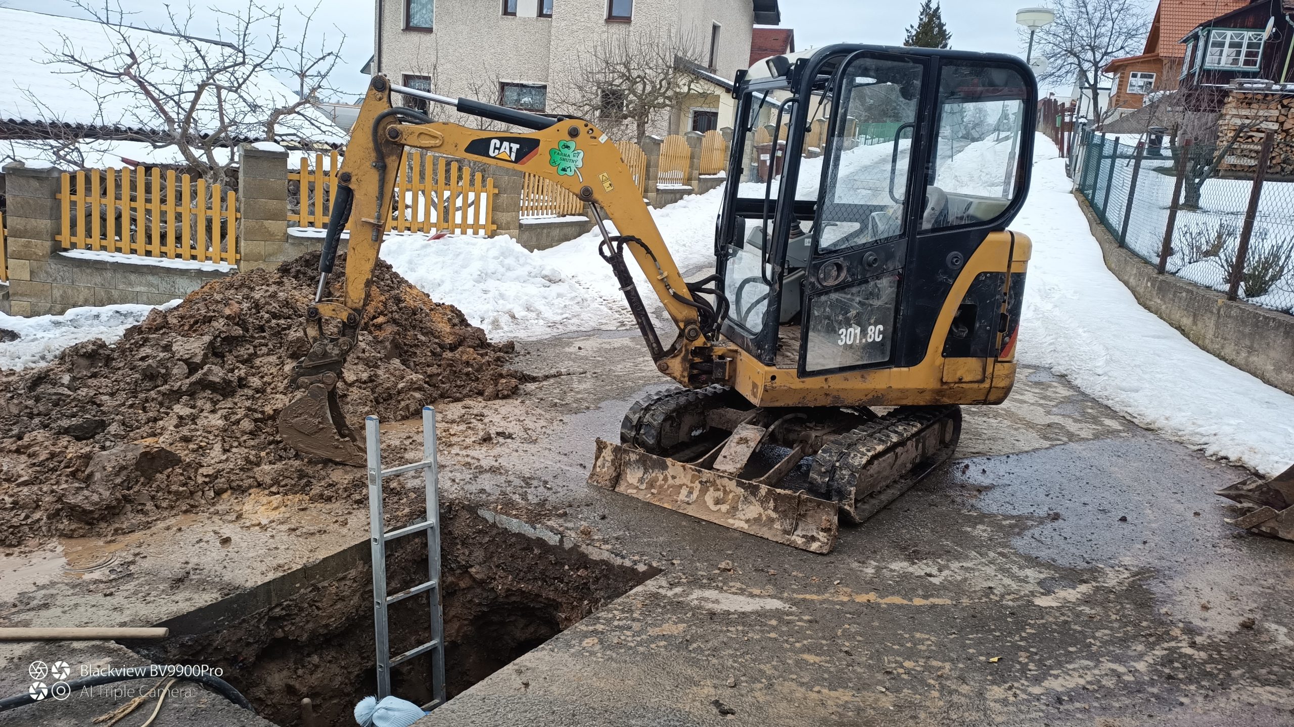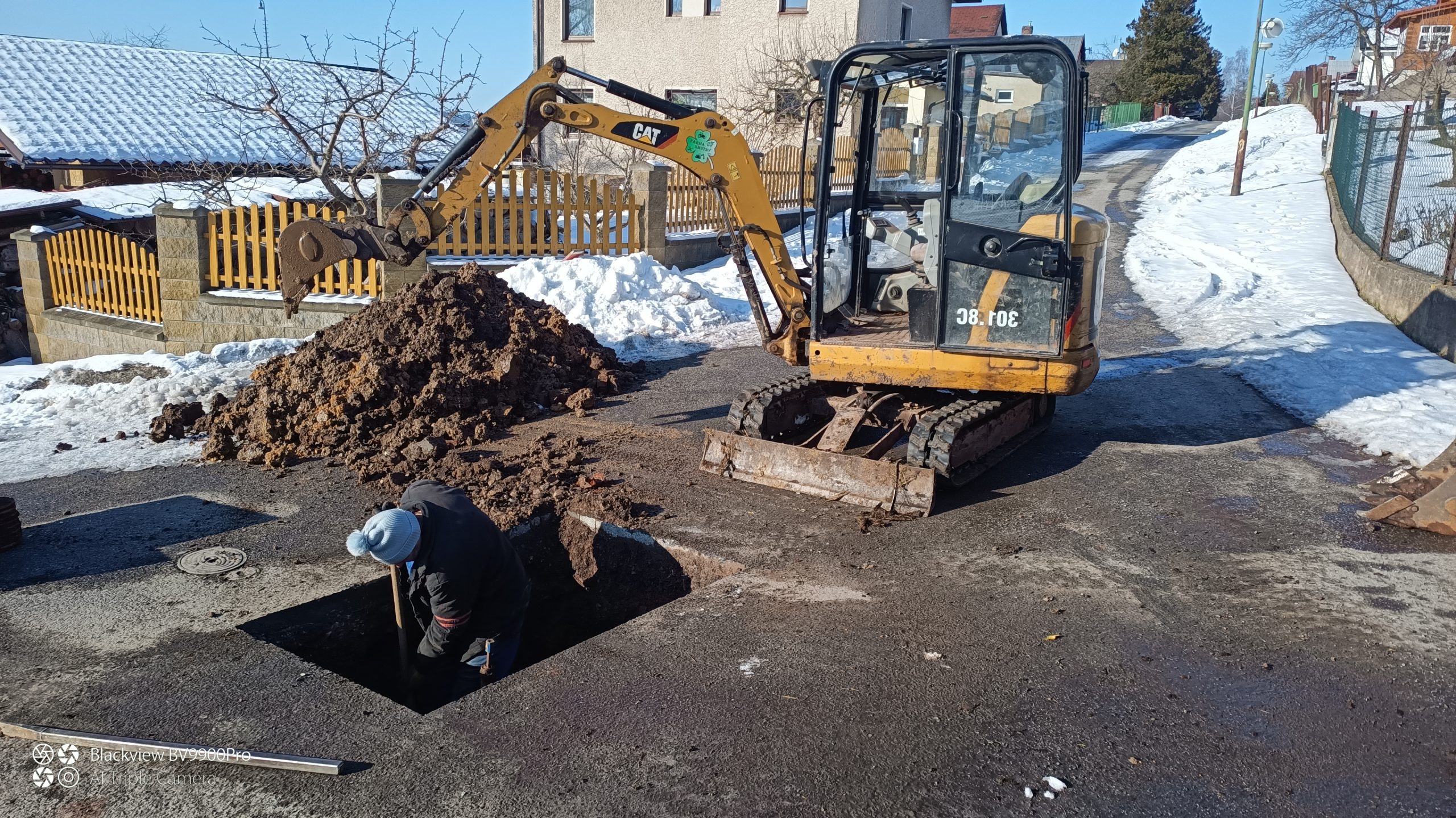 Zemní práce při poruše vodovodního řádu v Malých Svatoňovicích