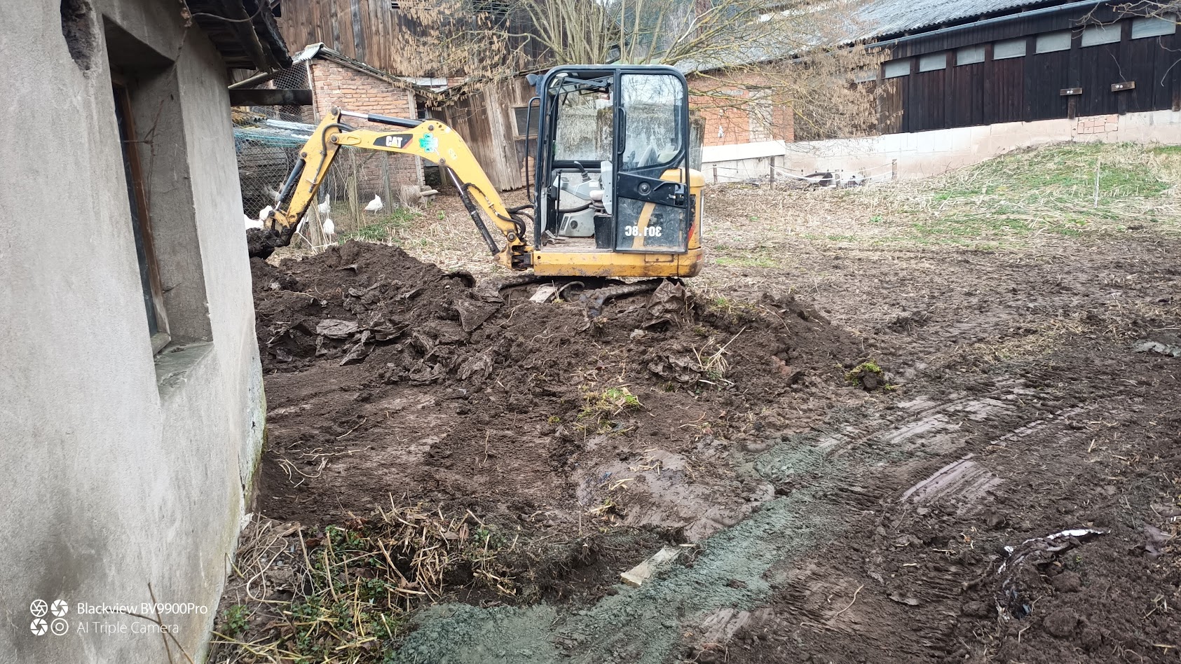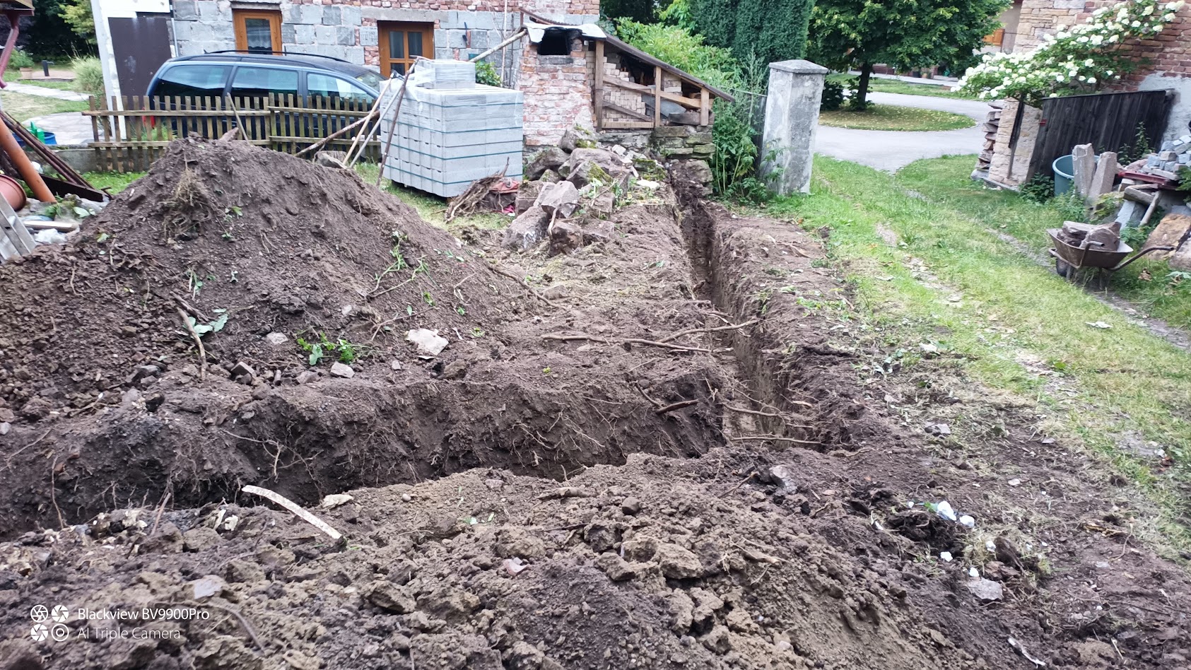 Výkop pro zpevnění základu domu Velké Svatoňovice