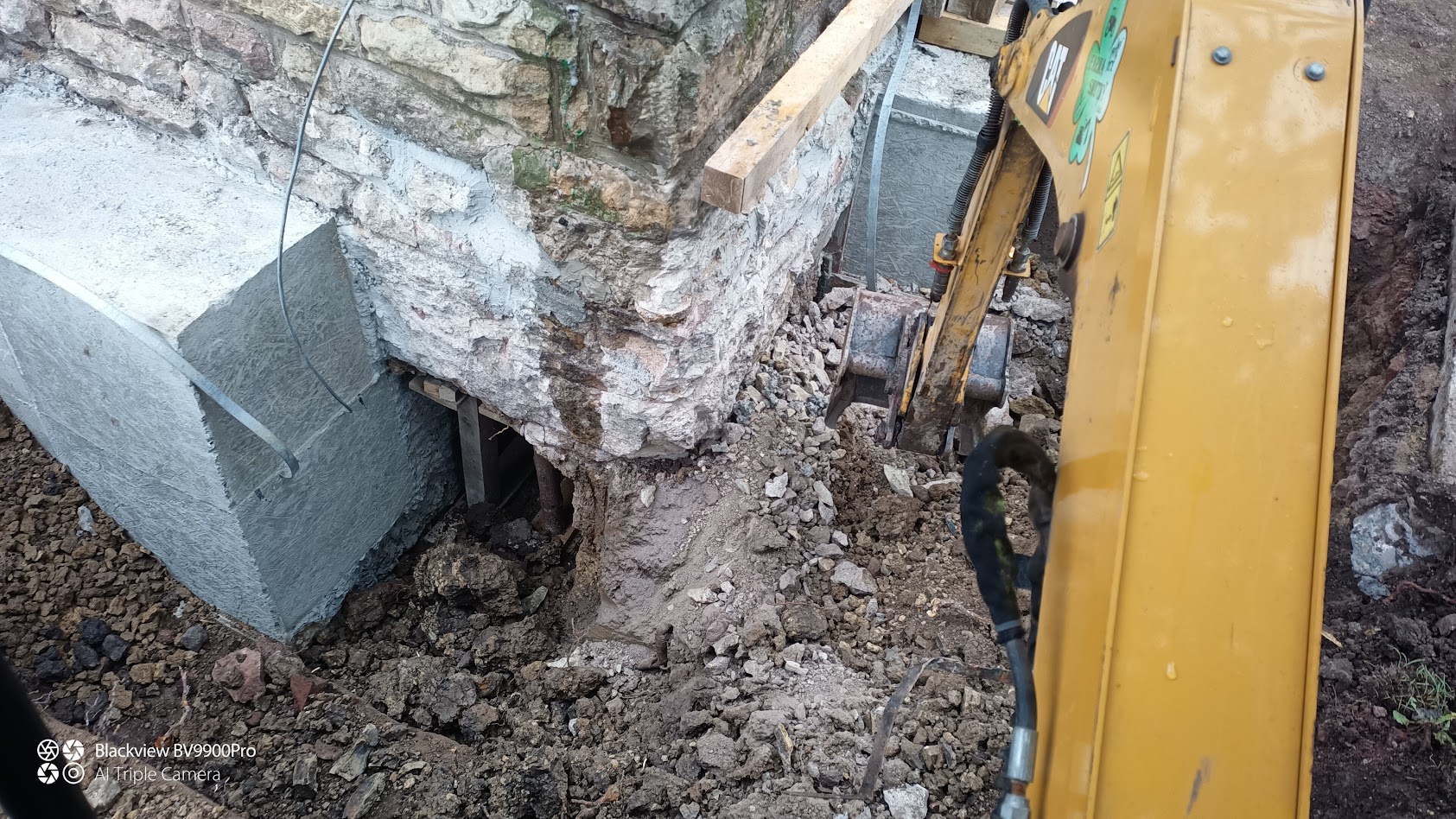 Výkopové prráce pro zpevnění základů Velké Svatoňovice